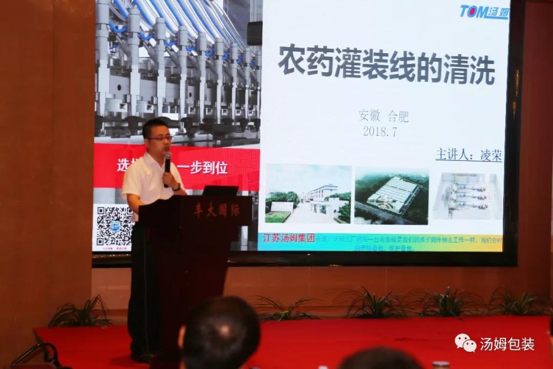 湯姆集團工程中心主任凌榮為與會代表作《農藥灌裝線清洗》報告,詳細的介紹了如何預防和避免農藥在包裝環(huán)節(jié)產(chǎn)生交叉污染,獲得了與會代表的一致好評!