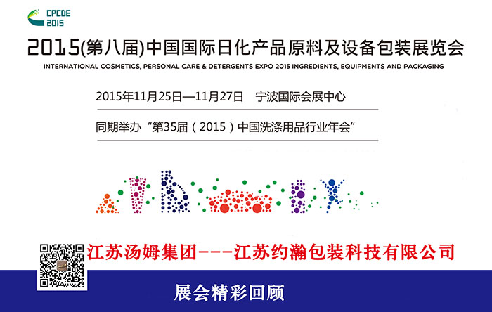 2015年11月25日第八屆中國(guó)國(guó)際日化產(chǎn)品原料及設(shè)備包裝展覽會(huì)在寧波國(guó)際會(huì)展中心隆重舉辦,江蘇湯姆集團(tuán)---江蘇約瀚包裝科技有限公司作為行業(yè)的標(biāo)桿企業(yè),攜最前沿技術(shù)亮相了本次展會(huì)!